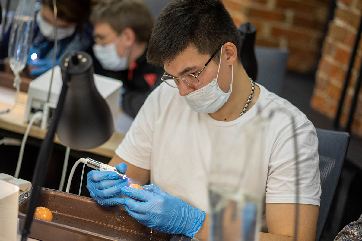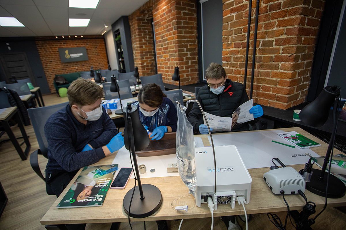 А на практической части участники практиковались на специальных моделях. Они научились проводить синуслифтинг, забор блока, остеотомию, расщепление и закрытый синус-лифтинг.