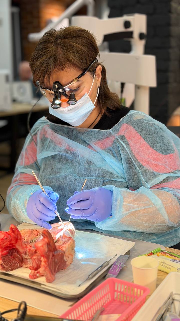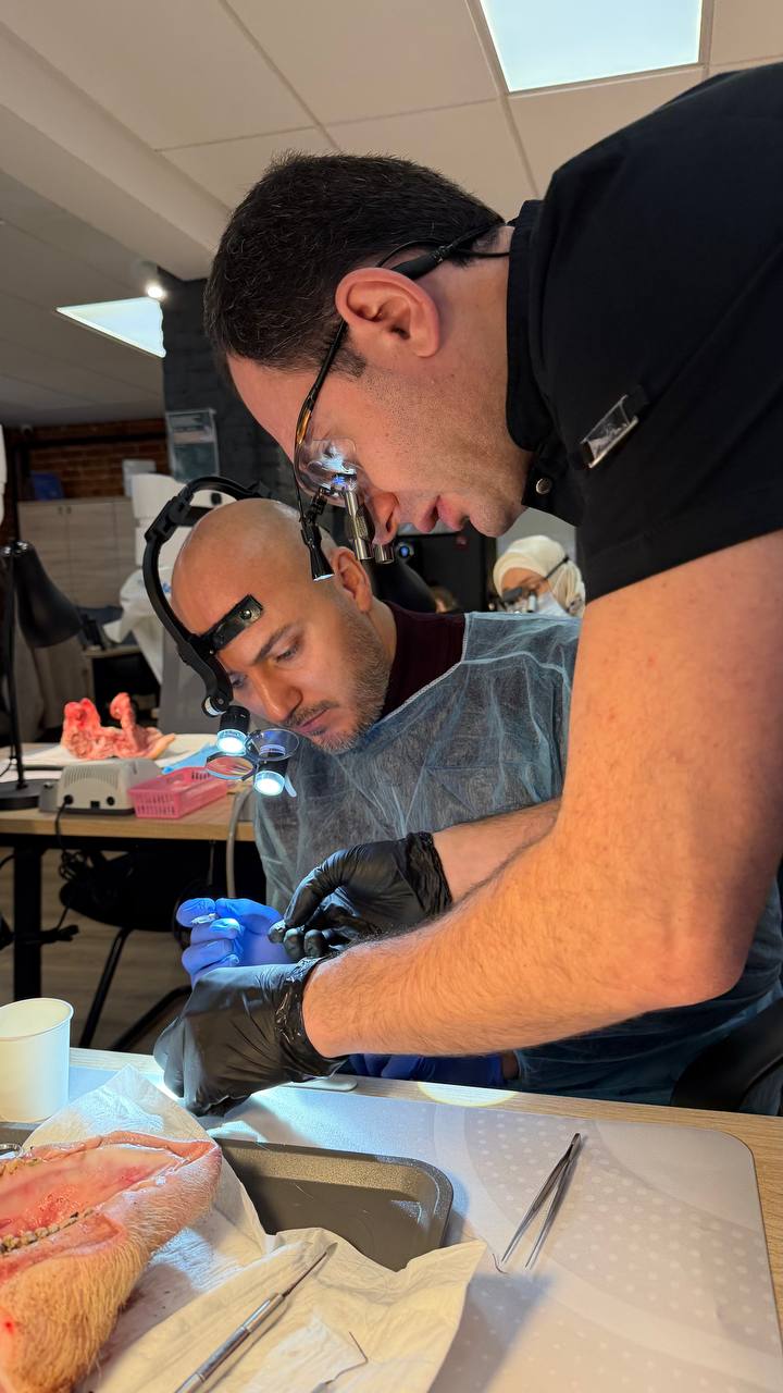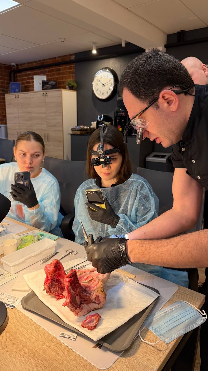 Вместе с топовым лектором участники курса развели тучи незнания руками и изучили всё необходимое для качественной профилактики и устранения осложнений при имплантологическом лечении с акцентом на хирургическую и ортопедическую пластику десны, а также отработали полученные навыки на биофантомах.